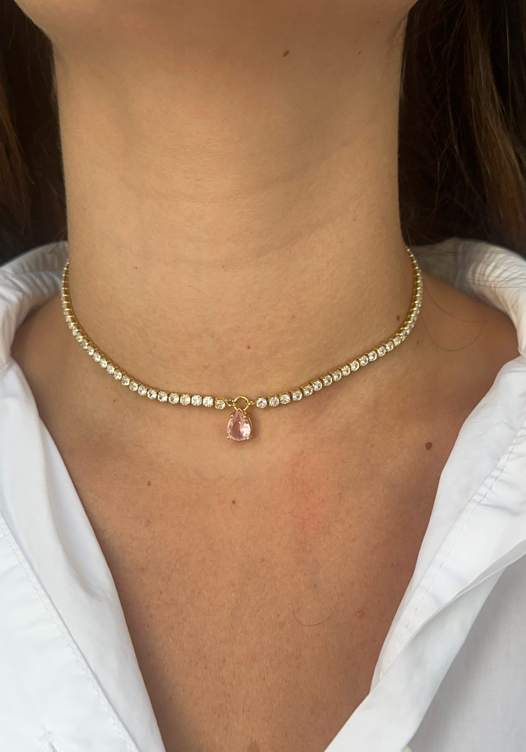 Pink Drop Tennis Necklace